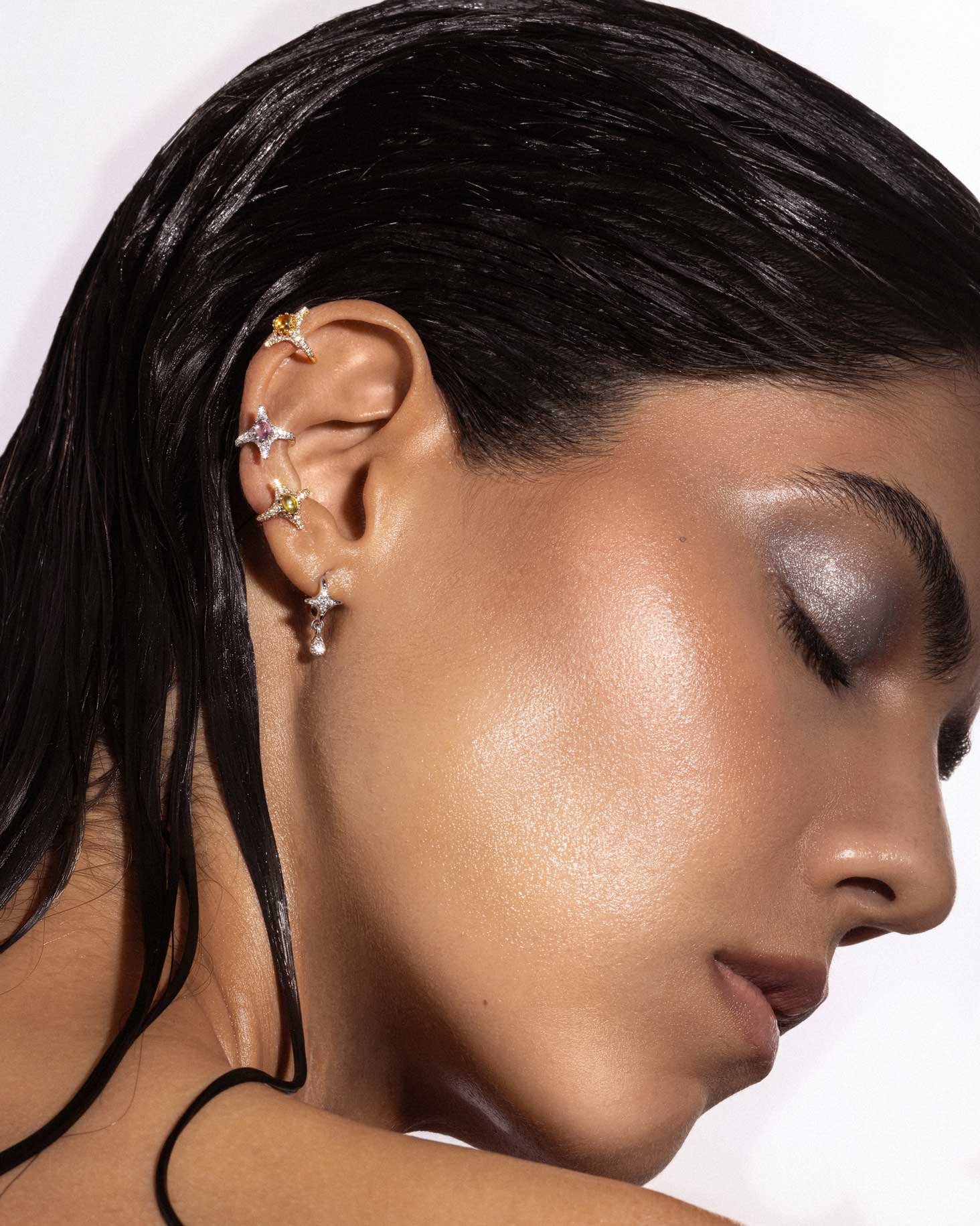 The Luna Mini Drop Hoops feature a star-shaped design with pavé-set diamonds and a drop element. Available individually or as a pair, these hoop earrings bring a touch of sparkle and offer versatility for mixing and matching.